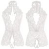 The intricate lace detailing elevates the entire ensemble, making it not just a piece of lingerie, but a statement of style. Ideal for romantic evenings or surprise moments, this lace see through teddy bodysuit is a versatile addition to your wardrobe.