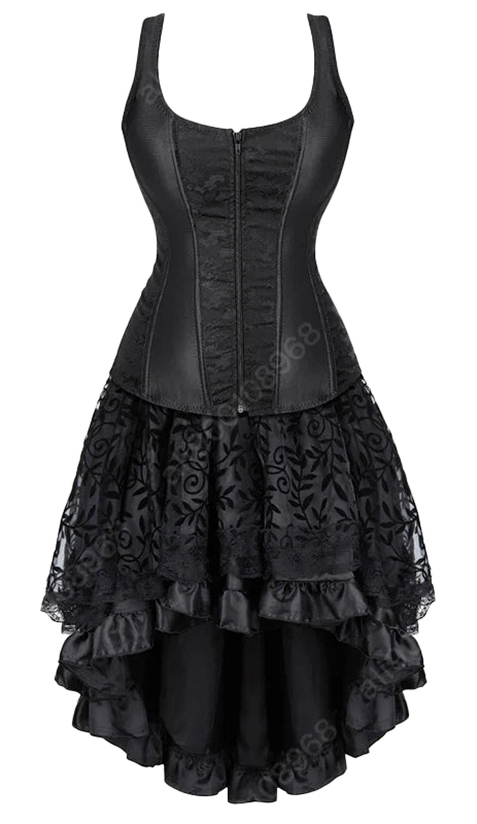 Step into a world of elegance with our Gothic Corset Dress for Women. This stunning piece features a fitted black corset design with straps, perfect for accentuating your curves. The intricate lace skirt adds a romantic touch, making it ideal for both casual outings and special events.