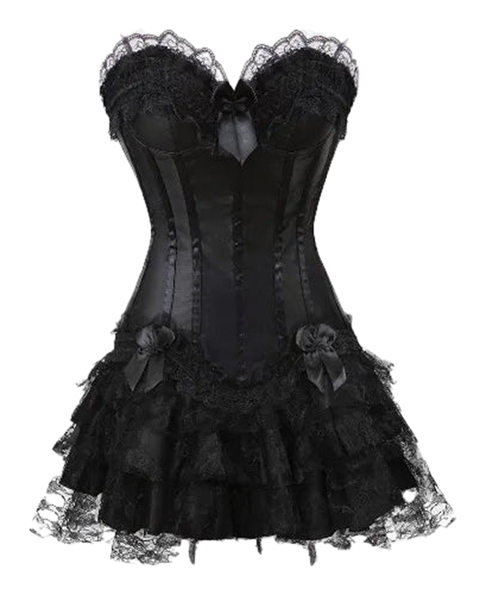 LuckeLadybug gothic corset dress with skirt featuring lace details and a ruffled hemGothic Corset Dress With Skirt Chic Style