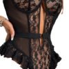 Crafted from high-quality materials, this bodysuit features intricate lace detailing that enhances your natural beauty. The adjustable straps allow for a customized fit, ensuring comfort while maintaining style. The daring cutouts and charming ruffles add an extra touch of allure that makes this outfit perfect for romantic nights.