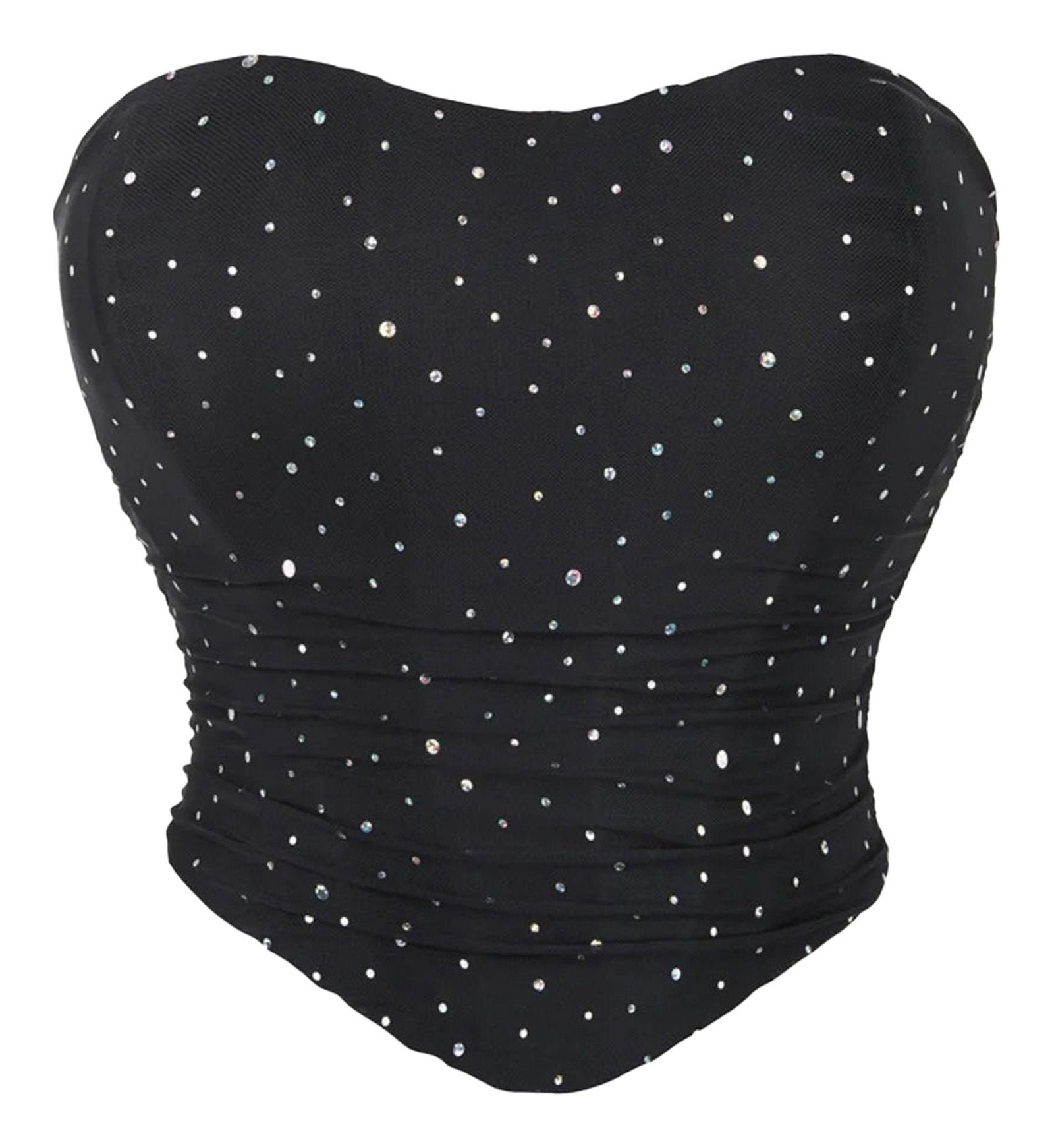 Discover our stunning mesh corset top glitter that combines elegance with comfort. Designed for those who love to shine, this strapless bustier features breathable stretch fabric, ensuring you feel as good as you look. The sheer panels create a sophisticated look that captivates attention.