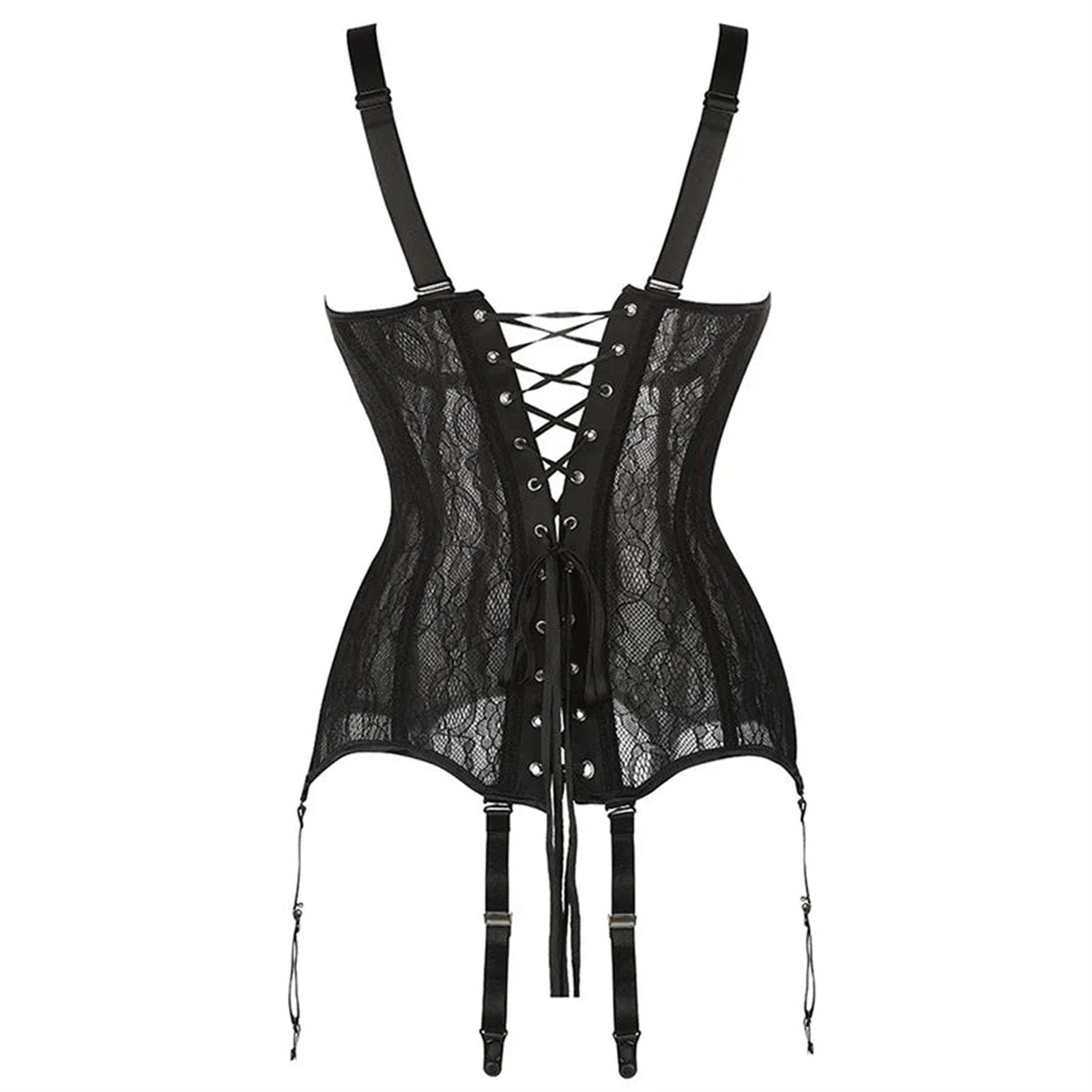 Available in sizes S to 2XL, our plus size black lace corset caters to a variety of body types. This makes it perfect for confident individuals looking to express their style. The classic black color offers versatility, enabling you to pair it with various outfits or wear it on its own for special occasions.