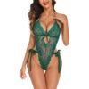 Crafted from high-quality lace, the bodysuit features delicate floral patterns that add a touch of elegance. The deep V-neck design enhances your silhouette, making it both flattering and eye-catching. Adjustable straps ensure a perfect fit, while the tie accents on the side offer versatility in styling.