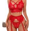 Elevate your intimate wear collection with our sexy lace lingerie set for women. This stunning three-piece set includes a bra, panty, and garter belt, all designed to showcase your curves beautifully. The delicate lace fabric is both soft and alluring, creating a perfect blend of comfort and flirtation.