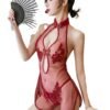 The beautiful satin ribbon adds a charming detail, tying the look together. The sheer fabric offers just the right amount of daring, ideal for those who wish to turn heads. The mix of playfulness and sophistication makes this piece a must-have in your wardrobe.