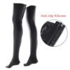 One of the key features of these sexy PVC thigh high stockings is their non-slip design. No need to worry about readjusting; these stockings stay in place as you move. They are easy to slip on and combine well with skirts, dresses, or your favorite lingerie. Add a pair of high heels for a complete look that will turn heads.