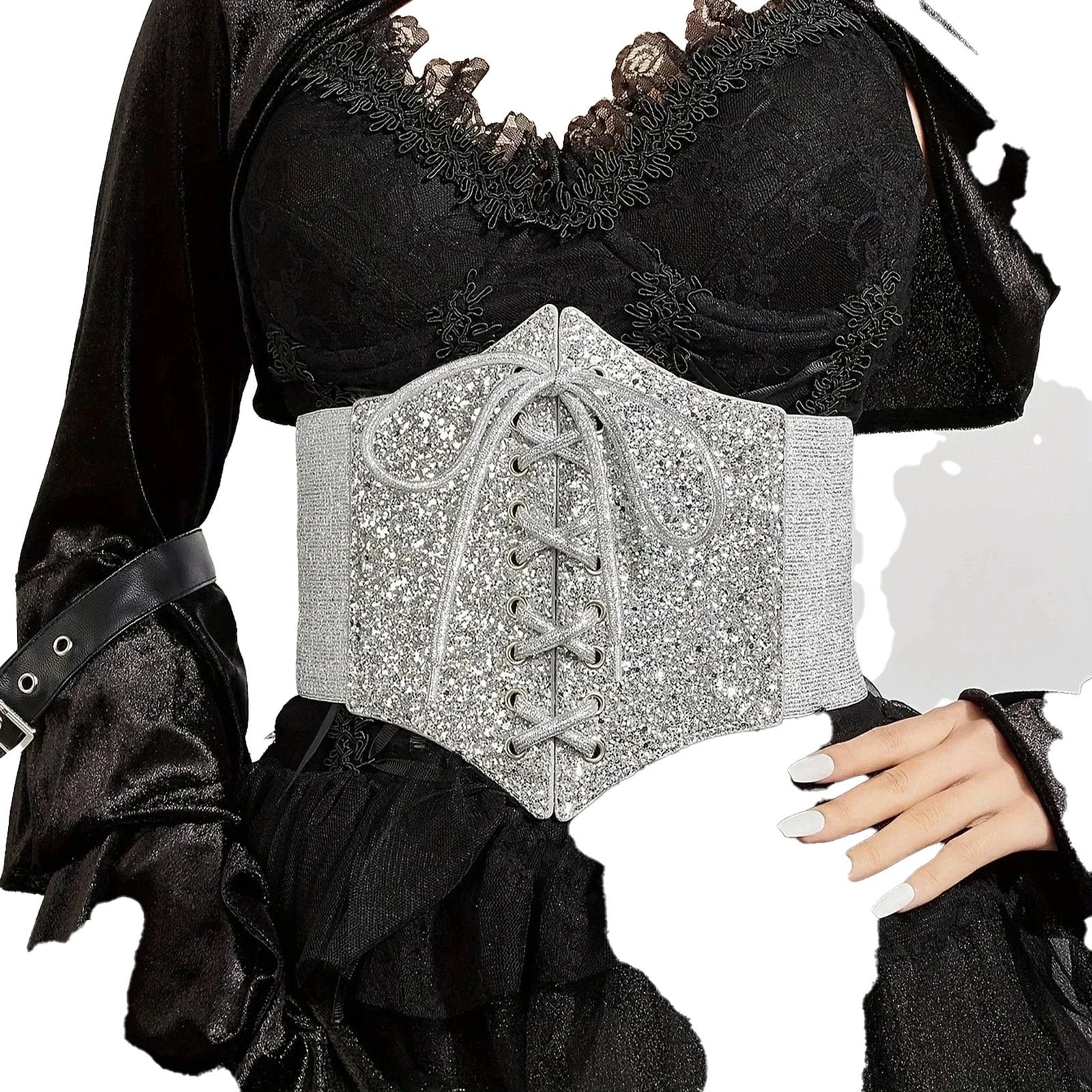 The silver corset belt for women is designed to fit comfortably and securely. Its lace-up front allows for easy adjustments, ensuring a perfect fit for every body type. The elastic waistband enhances your figure while providing exceptional comfort, making it suitable for long hours of wear.