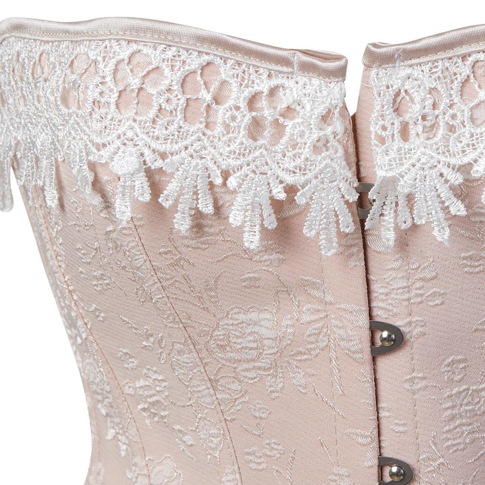 Each corset also comes adorned with delicate lace trimming that enhances the overall vintage appeal. The combination of comfort and style make this vintage jacquard overbust corset a must-have in your wardrobe. Whether layered over a dress or worn alone, it adds a touch of romance and sophistication to any look.