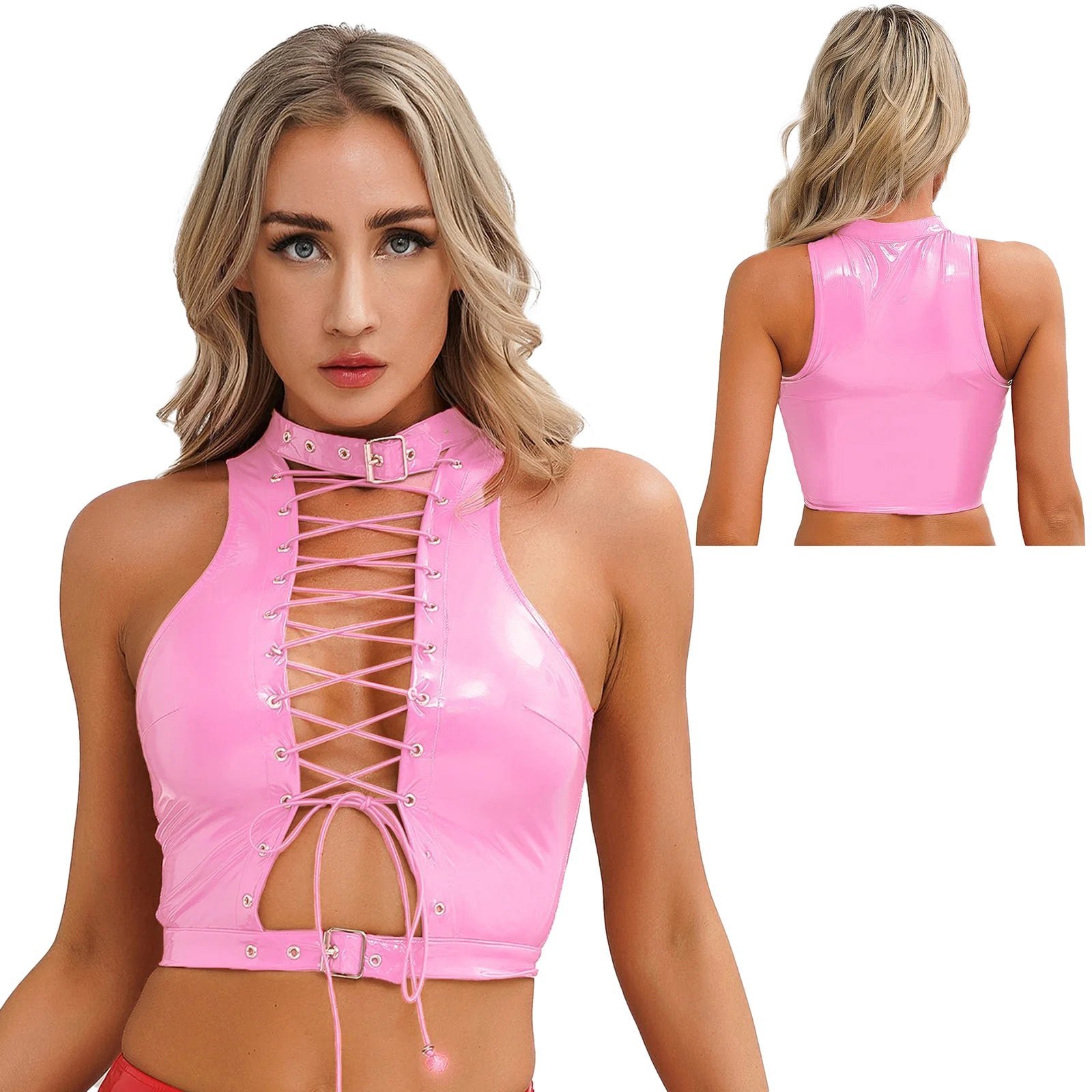Step into a world of edgy elegance with the womens gothic corset crop top from LuckeLadybug LLC. This stunning piece combines classic gothic influences with modern aesthetics, making it ideal for clubwear or costume events. Crafted from high-quality patent leather, the top features a sleek wet look that catches the eye and elevates any outfit.